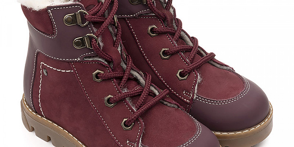 Современные высокие утепленные ботинки на подкладке из шерстяного меха. Выполнены из натурального нубука насыщенного бордового цвета. Натуральная кожа с гидрофобным покрытием на носке и пятке. Удобная застежка-молния сбоку, дополнительная шнуровка спереди, позволяющая оптимально подогнать полноту обуви по ноге ребенка. Широкий, комфортный мягкий кант. Упругая анатомическая стелька для правильного формирования стопы. Жесткий фиксирующий задник с удлиненным крылом надежно стабилизирует голеностопный сустав во время ходьбы. Упругая, умеренно-эластичная подошва с протектором, имеющая перекат, позволяющий повторить естественное движение стопы при ходьбе для правильного распределения нагрузки на опорно-двигательный аппарат ребенка. Подкладка из шерстяного меха поддерживает комфортную температуру внутри обуви при погодных условиях от -5 до -15 градусов.